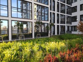 Территория ЖК огорожена,благоустроена, видеонаблюдение . Двор без машин. Игровые детские площадки, зоны отдыха, спортивные площадки для баскетбола и волейбола, стадион с полем для футбола. Ландшафтный дизайн.