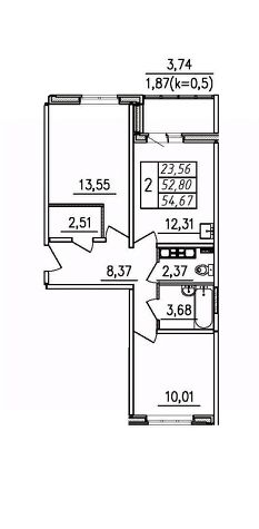 Продаётся 2-комнатная квартира в строящемся доме (Корпус 1), срок сдачи: I-кв. 2027, общей площадью 54.67 кв.м., на 2 этаже. Новый жилой дом от застройщика "СЗ Меридиан" расположен по адресу: Россия, Санкт-Петербург, Пушкинский район, посёлок Шушары, Школьная улица