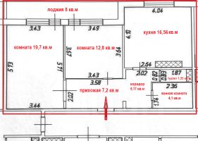 - Комната 19,7 кв. м с выходом в застекленную лоджию;