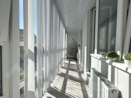 - Огромная утепленная лоджия 8 кв.м с 2-мя выходами в спальню и гостиную, с дорогостоящим зимним 2-х камерным остеклением, отапливаемая - доп. комната отдыха в любое время года;