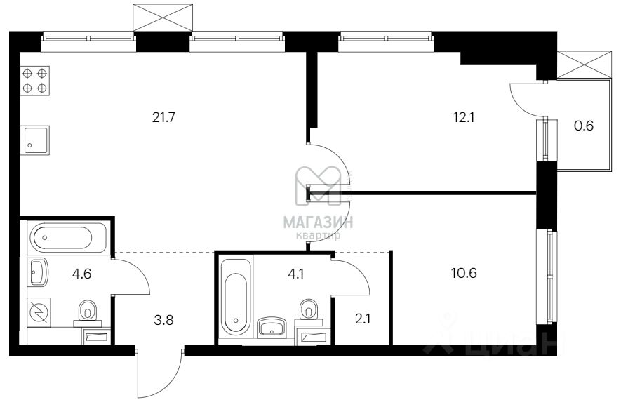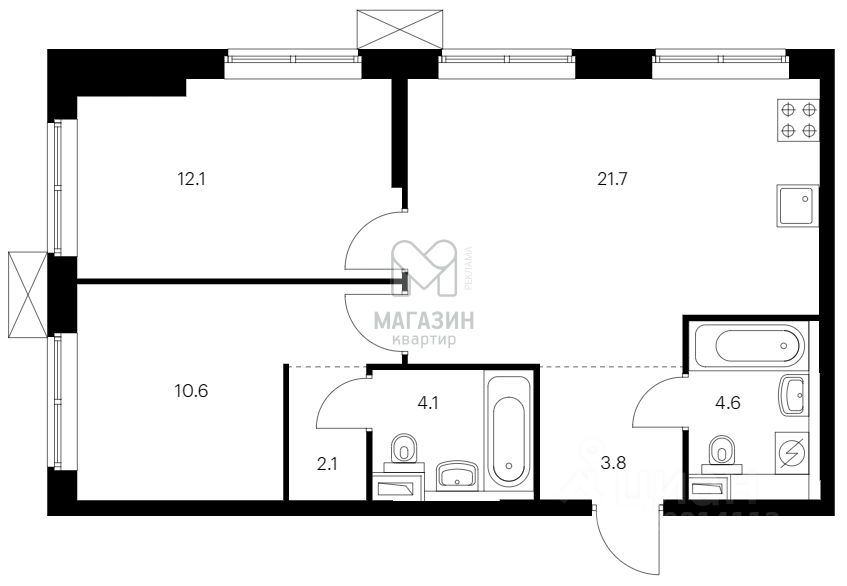 Высокие потолки 2.82 м и большие окна без импоста наполняют пространство светом. Кухня 20.9 м² легко станет сердцем дома здесь хватит места и для кухонного гарнитура, и для обеденной зоны, и для мягкого уголка.