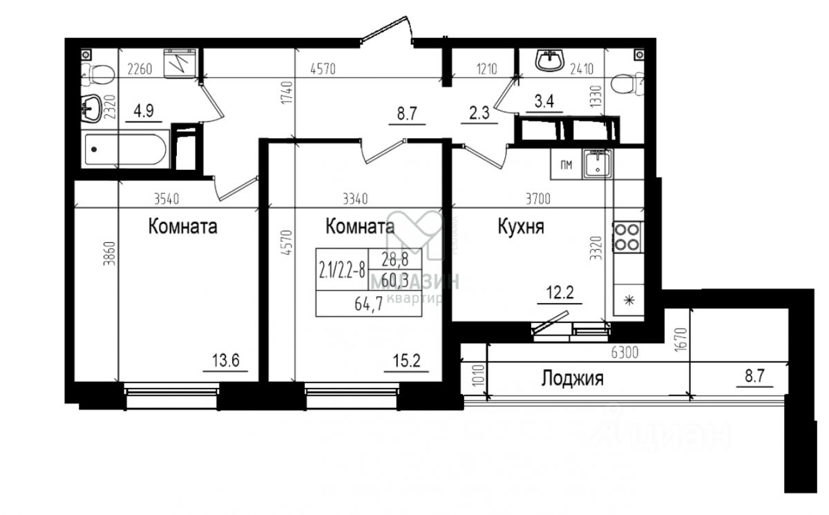 - Площадь: 60.3 м²