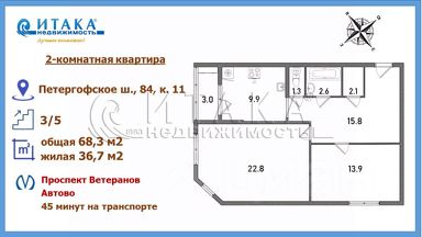 • 5-7 минут в другую сторону автобусы до метро "Проспект Ветеранов".