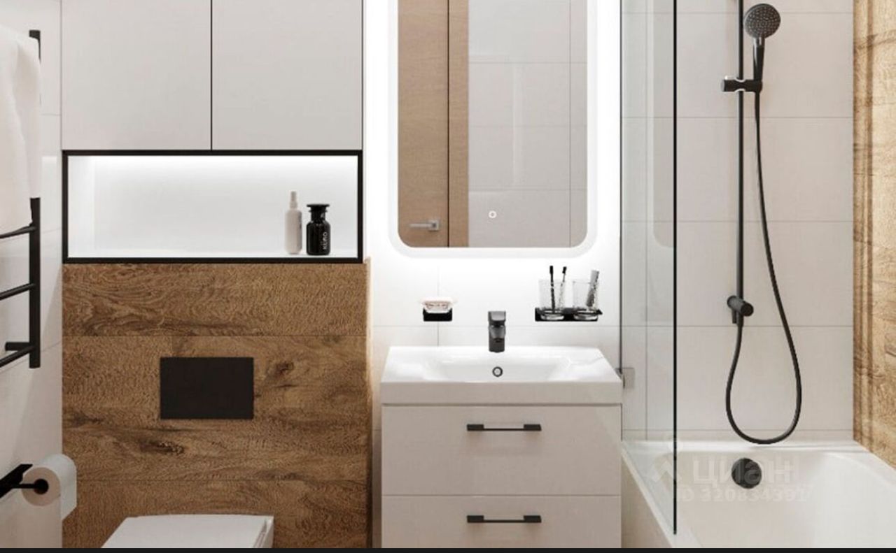 • Квартира с чистовой отделкой (полы светлого тона, обои под покраску, натяжные потолки, в санузле плитка с имитацией под мрамор, теплые полы, белые межкомнатные двери)