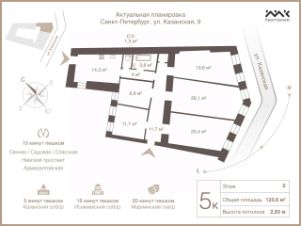 Арт. 113328304 Просторная пятикомнатная квартира в сердце Петербурга рядом с Казанским собором — идеальное семейное пространство для жизни в самом центре города.