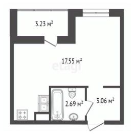 Площадь квартиры-23.3 м2,жилая: 17,55м2, прихожая 3,06 м2,санузел 2,69 м2, лоджии- 3,23 м2