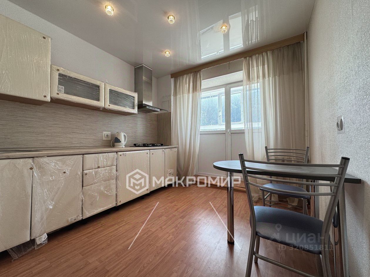 В кухне новая встроенная кухня, газовая варочная панель и вытяжка. Предусмотрены места для установки духового шкафа и посудомоечной машины. Присутствует обеденная зона.