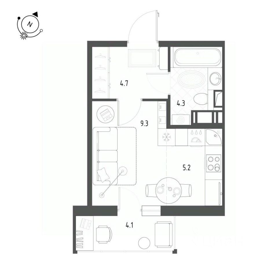 Продается квартира 170, по адресу г. Санкт-Петербург, поселок Шушары, Чудовская улица, дом 14, корпус 1, строение 1, корпус ЖК Монография в Монография на 7 этаже, с площадью 24.8 м2.