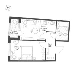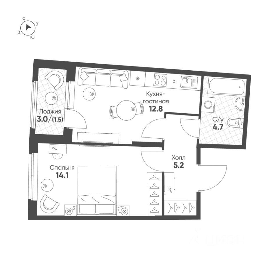 Продается квартира 223, по адресу Ленинградская область, Всеволожский муниципальный район, Муринское городское поселение,город Мурино, корпус Ягодное Река Парк, 1 очередь, участок 1.10, корпус 1 в Ягодное Река Парк на 6 этаже, с площадью 38.3 м2.