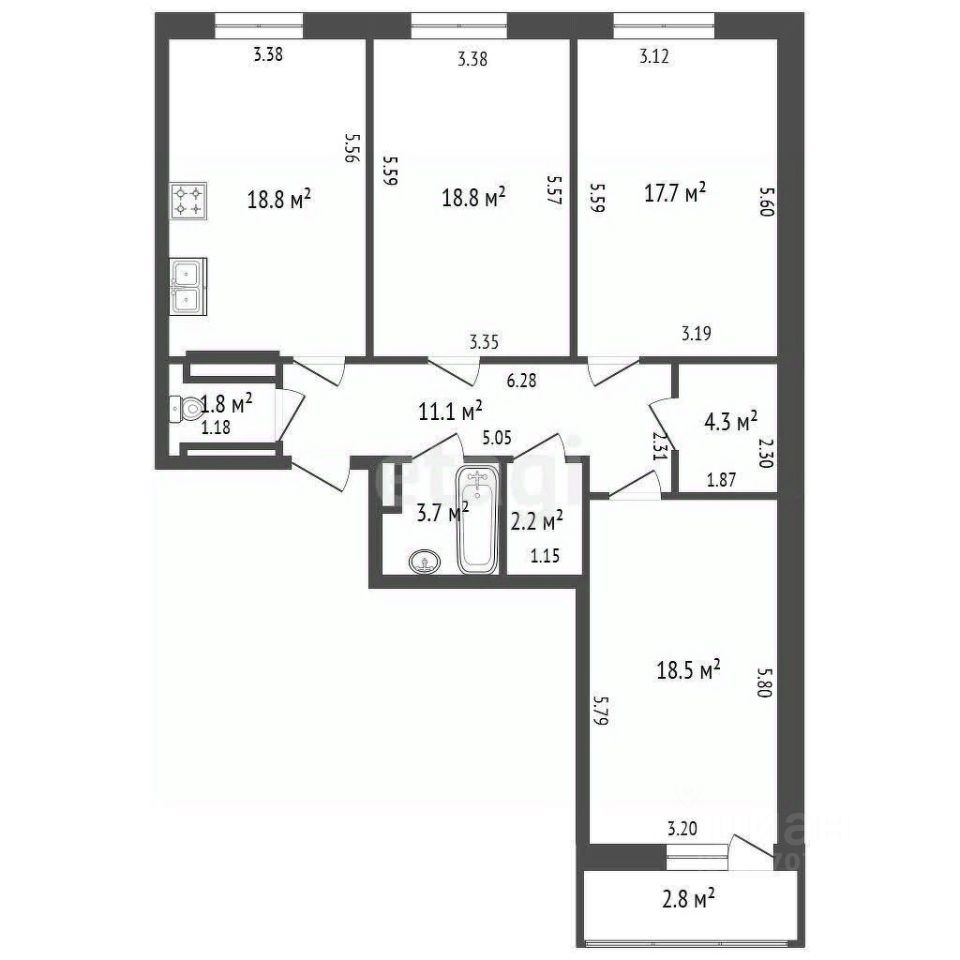Это очень уютная и большая квартира с шикарной планировкой! Все комнаты правильной формы, что делает её идеальной для комфортного проживания.