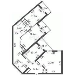 Трехкомнатная квартира площадью 102,9 м² расположена на 6 этаже 14-этажного кирпичного дома 2001 года постройки. Дом возведен по индивидуальному проекту с усиленными железобетонными перекрытиями и кирпичными стенами толщиной 70 см, что обеспечивает высокую звукоизоляцию и сохранение тепла, а окна, выходящие во двор, гарантируют тишину и спокойствие.