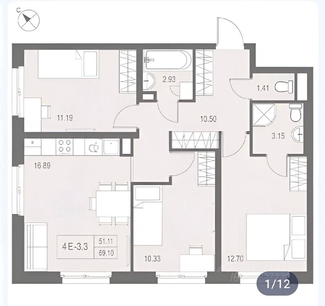 Все комнаты правильной формы. Просторная кухня-гостиная с двумя окнами, откуда отрывается панорама на воду, три спальни, три санузла, один из которых можно преобразовать в гардеробную или кладовую. Высокие потоки 2,7 метров. Увеличенные окна. Комфортный 4 этаж.