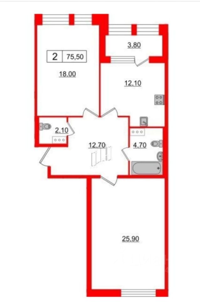 Предлагаем вашему вниманию просторную двухкомнатную квартиру в новом доме на Манчестерской улице, Санкт-Петербург. Общая площадь квартиры — 75,5 кв. м, из которых жилая — 43,9 кв. м, а кухня занимает 12,1 кв. м. Квартира расположена на 6-м этаже 10 - этажного монолитного дома, построенного в 2022 году. Высокие потолки в 3 метра добавляют ощущение простора и света. Из окон открывается вид как на улицу, так и во двор, а также есть лоджия для вашего удобства.