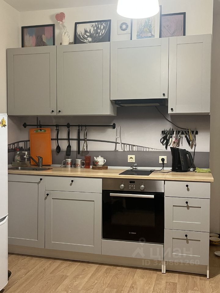 Просторная кухня площадью 19 м² оборудована современной техникой, включая холодильник и встроенную духовку. Из кухни выход на застекленную лоджию с панорамными окнами, откуда открывается вид во двор.