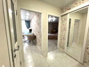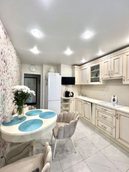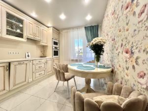 - комфортная кухня 10.6 м кв, оснащённая кухонным гарнитуром и встроенной техникой с выходом на балкон 10.9 м кв