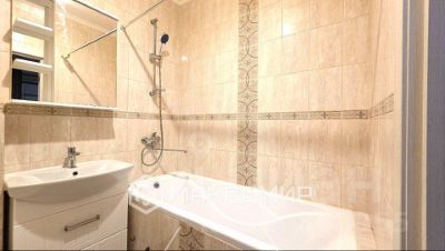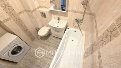 Редкость для студий — просторная ванная комната с самой ванной (не душ)! Кафель до потолка, установлена инсталляция и есть ниша для стиральной машины.