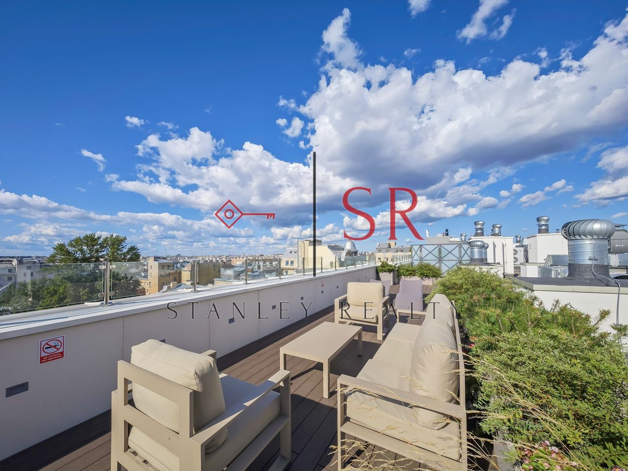 На крыше комплекса обустроена общая просторная терраса с мебелью и лежаками только для жителей дома и их гостей, откуда открывается восхитительный вид на ключевые доминанты Петербурга.