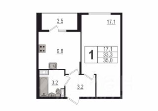 Квартира расположена на 3 этаже. Удобная планировка - кухня 9,8м2 с выходом на просторную лоджию с местами для хранения, комната 17,1 м2 с нишей под шкаф. Площадь 33,3 м2 указана БЕЗ учета лоджии. Квартира никогда не сдавалась.