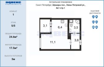 • Последний 5 этаж с высотой потолка 3 метра! (А не 2,75, соседи не затопят, не будут топать)