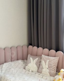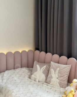 • В спальне предусмотрены 5 сценариев освещения, выделена зона отдыха с 2х спальной кроватью 180*200, а также рабочая зона со столиком, детская кроватка, вместительная система хранения.