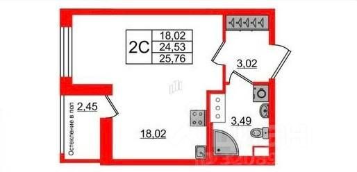 - Просторная планировка с продуманной функциональностью -прихожая 3,02,жилая -18,02,высота потолка 2,75.