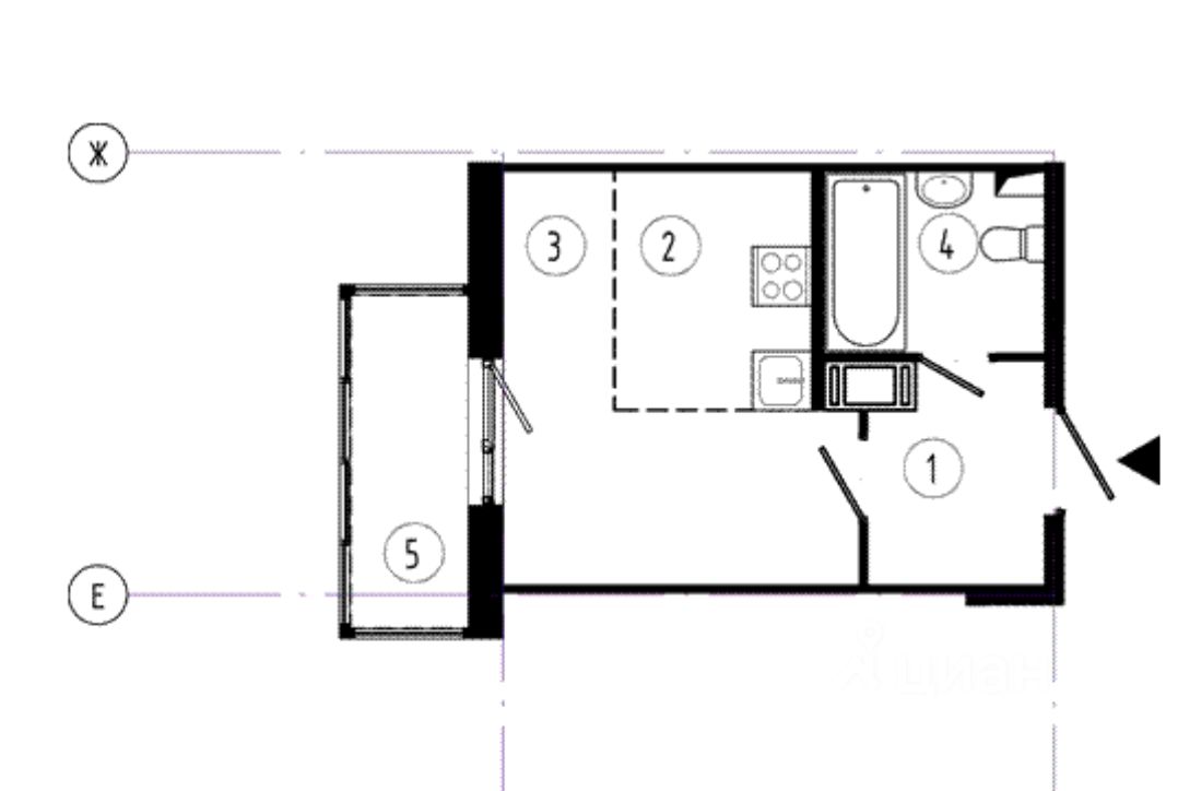 Предлагаем студию, приведенная площадь 23,3 м2, черновая отделка.