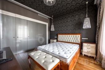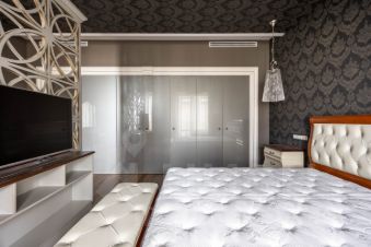 Роскошная спальня с кроватью King Size, гардеробной комнатой и выходом на балкон