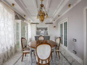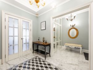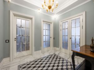 Высота потолков — 3 метра, массив дуба, лепнина из Бельгии, тёплые полы по всей квартире
