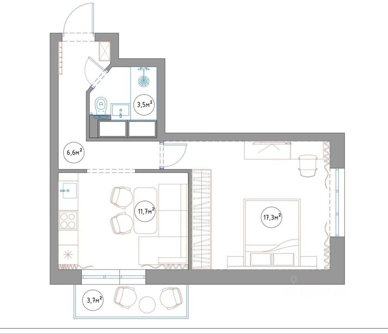 Угловая двусторонняя-самая лучшая планировка для 1комн. квартиры. Окна смотрят на юг и запад.