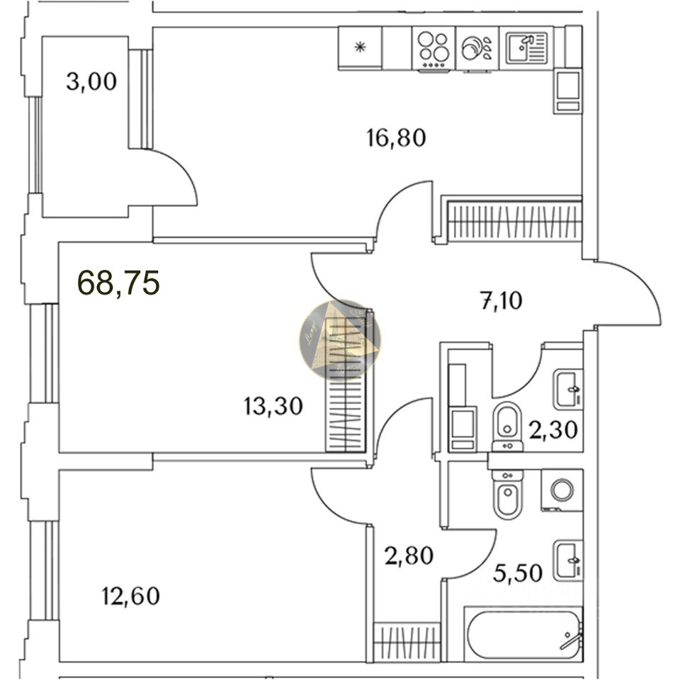 Срочно продаётся 3Е-квартира с двумя спальнями общей площадью 68,75 м2. в Приморском районе Санкт-Петербурга. Квартира находится в среднеэтажном доме комфорт-класса со всем необходимым для жизни. Идеальный вариант для тех, кто хочет жить в спокойном районе в окружении природы.