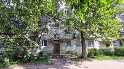 Окна выходят на зеленую зону (деревья). Частично установлены новые стеклопакеты (кухня + одна комната).