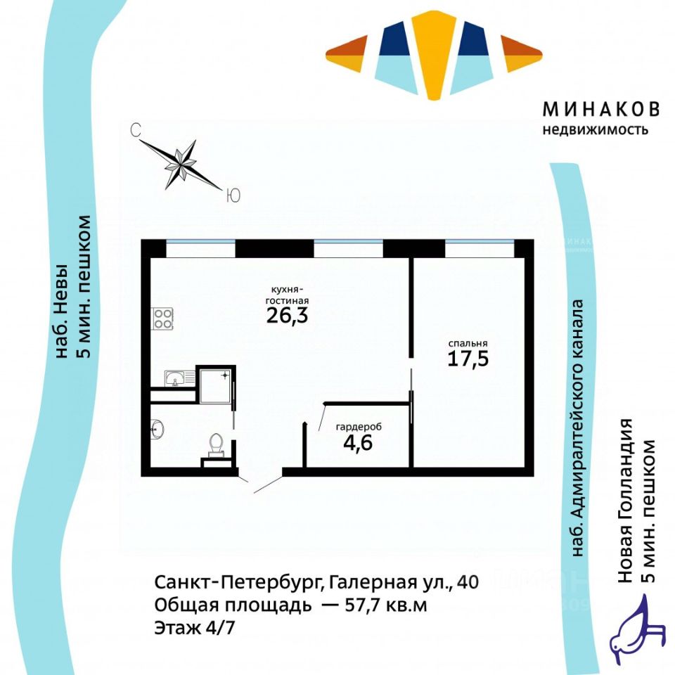 Идеальная квартира выходного дня, в новом доме в лучшем месте Петербурга - на уютной и тихой Галерной улице, центре культурной жизни.