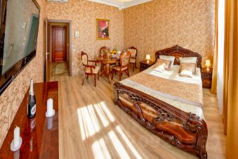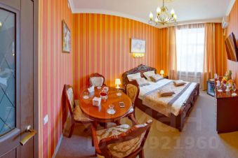 ОБ ОБЪЕКТЕ: Планировка включает в себя: рецепшн, шесть комнат и апартаменты с двумя спальнями, просторной гостиной, сауной, спа - бассейном, кухней и действующим камином - на четвёртом этаже и шесть комнат, кухня для гостей, прачечная на пятом этаже. Парадная лестница со стороны улицы, пологая, чистая лестница. Зелёный, открытый, просторный, двор. Высокие потолки 3,3 метра создают ощущение простора. Вид из окон в сторону улицы и во двор (восток и запад), двухсторонняя планировка обеспечивает хорошее естественное освещение. Изысканный интерьер в классическом стиле. Каждыая комната укомплектована необходимой мебелью, имеет собственный санузел, кондиционер и телевизор. Оборудована кухонная зона, которой могут пользоваться постояльцы. Квартира продаётся со всей мебелью и техникой.