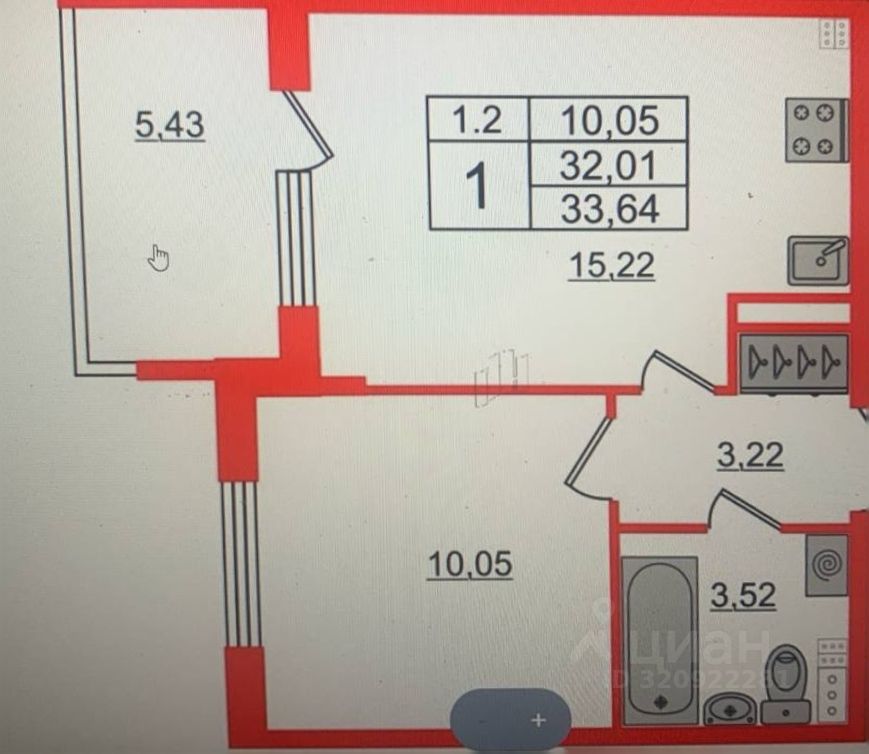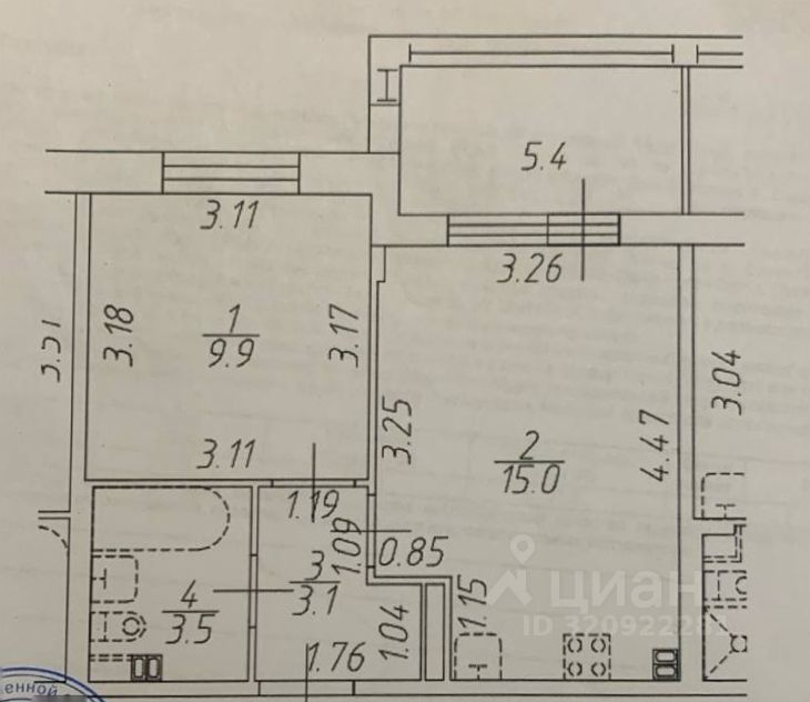 - большая застеклённая лоджия (по размеру как отдельная комната 5,43 м2)