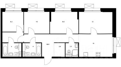 Планировка функциональная, подходящая для большой семьи: большая прихожая с зоной под установку гардеробной, четыре спальных комнаты, просторная кухня-столовая, три санузла.