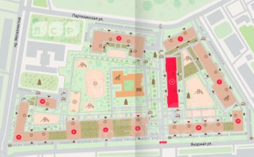 - На территории комплекса спроектированы игровые площадки для детей разных возрастов, спортивные и лаундж-зоны, а также коворкинг