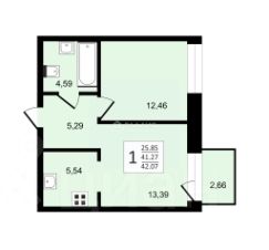 Квартира: общей 41,3 кв метра, кухня 18,9 кв метра без отделки.