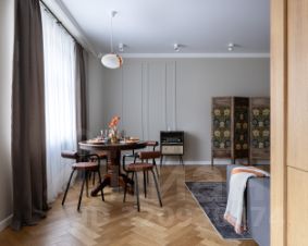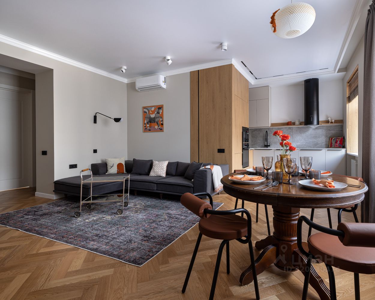 Представляем вашему вниманию квартиру с просторной кухней-гостиной и двумя спальнями в современном стиле с винтажными элементами под ключ в центре Санкт-Петербурга.