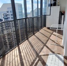 ПРО КВАРТИРУ: Просторная лоджия 11,4 кв.м. с остеклением в пол, позволяет организовать пространство на Ваше усмотрение Единая площадь квартиры с лоджией составляет 48 кв. м. . Потрясающий вид на город! Квартира полностью оборудована для комфортного проживания. Сделан свежий ремонт. В ванной и на кухне напольное покрытие - плитка, комната и прихожая - инженерная доска. Кухонный гарнитур выполнен на заказ ( Кухни Villa), фасады мдф. Остается вся техника: варочная панель, духовой шкаф, холодильник, посудомоечная машина, стиральная машина. В комнате кровать и вместительный шкаф-купе.