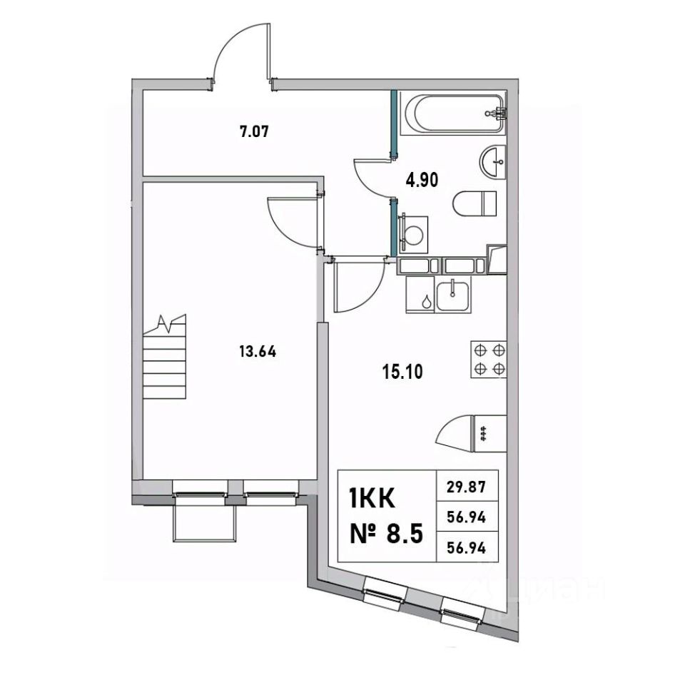 56,94 м²