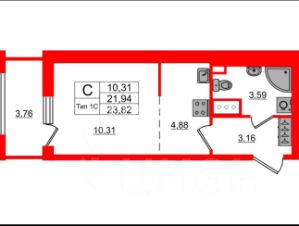 Уникальная планировка с зонированием кухни !