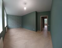 Полы: в жилых комнатах - дуб-селект Брис бен, в прихожей - кварцевый паркет, в ванной и туалете - керамогранит.