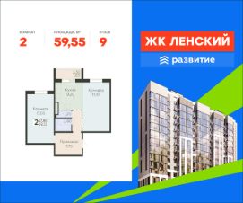В продаже квартира площадью 59.55 кв. м с отделкой white box на 9 этаже 16 этажного дома. Квартира находится в 4834 корпусе.