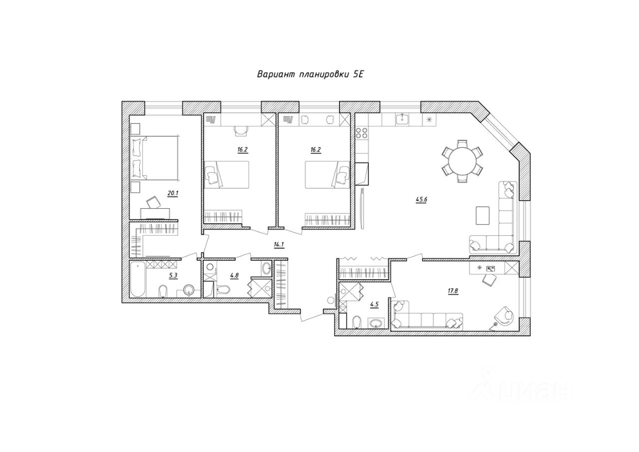 ЕДИНСТВЕННЫЙ вариант планировки в ЖК в бюджете до 80 млн, в котором можно легко реализовать вариант с 4-мя изолированными комнатами, при этом иметь по-настоящему просторную, а главное СВЕТЛУЮ кухню-гостиную с тремя окнами.
