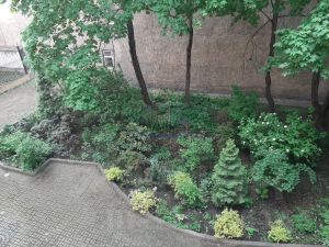 Охрана и видеокамеры, парковка для жильцов. Два дворa в плитке — ухоженные и аккуратные. Второй двор — зелёная оазис с деревьями и летними клумбами; идеальная чистота.