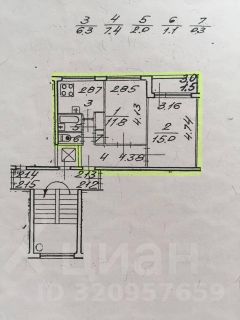 Общая площадь 43,9 м² включает изолированные комнаты 15 м² и 11.8 м², небольшую кухню 6,3 м², раздельный санузел и балкон. Квартира расположена на 9 этаже 9-этажного панельного дома, есть технический этаж над квартирой.