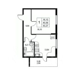 Общая площадь43,27 м²