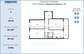 - Распoложeна на 16 этажe 16-этaжного дома, нет соседей над головой. Красивый вид из окон, так как окна выходят на две cтopoны с красивым променадным видом.