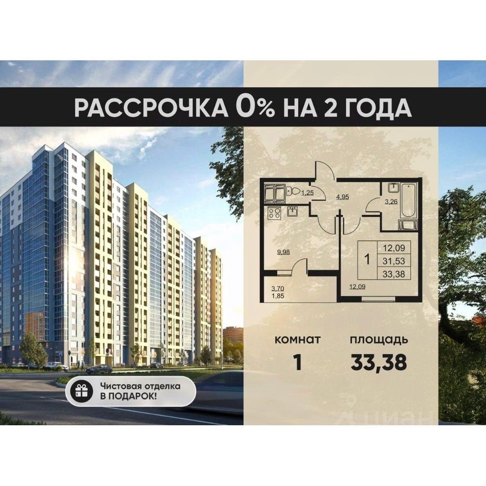 Прямая продажа от застройщика. Чистовая отделка в подарок! Будьте выше. ЖК "Высота" — это современный 18-этажный дом, предлагающий новый уровень комфортной жизни. Проект воплощает концепцию "всё необходимое в шаговой доступности": встроенный детский сад, расположенный прямо в комплексе, для максимального удобства родителей, магазины, аптеки и кафе. А для активного отдыха и спорта на территории комплекса предусмотрена баскетбольная площадка, которая зимой превращается в уютный каток. ЖК "Высота" — это больше, чем просто квартира, это новый, более высокий уровень жизни. Квартиры: ЖК "Высота" предлагает широкий выбор квартир и планировок: от функциональных студий до просторных двухкомнатных. Площадь квартир — от 24,74 м² до 79,44 м². Каждая квартира сдаётся с полной чистовой отделкой, позволяющей сразу начать обустройство без лишних затрат времени и средств на ремонт. Для дополнительного удобства жителей на цокольном этаже предусмотрены индивидуальные кладовые для хранения сезонных вещей и спортивного инвентаря. Транспортная доступность и расположение: ЖК "Высота" расположен в экологически чистом, активно развивающемся посёлке Бугры, недалеко от зон отдыха: "Охта-Парк", "Игора", "Северный склон" и конноспортивный клуб "Дерби". Комплекс может похвастаться отличной транспортной доступностью: 15 минут до станции метро "Девяткино", обеспечивающей быструю связь с центром Санкт-Петербурга и другими районами. В 20 минутах езды находятся станции метро "Гражданский проспект" и "Проспект Просвещения", до КАД — всего 10 минут. Благоустройство дворов: Дворы жилого комплекса "Высота" — продуманное пространство для отдыха и активного времяпрепровождения жителей всех возрастов. Для самых маленьких здесь оборудованы безопасные площадки с мягким резиновым покрытием, песочницами и невысокими горками. Дети постарше оценят игровые комплексы с качелями, каруселями и зонами для активных игр. Уютные зоны отдыха с удобными скамейками, расположенными в тени деревьев, позволят насладиться тишиной и свежим воздухом. Продуманная система велодорожек и тротуаров обеспечивает комфортное и безопасное передвижение по всей территории комплекса. Особое внимание уделено доступности для маломобильных групп населения. Инфраструктура: Здесь созданы все условия для активного образа жизни. Для взрослых жителей оборудована спортивная площадка для занятий воркаутом и баскетболом. Зимой на её месте заливается каток. Для маленьких жителей предусмотрен большой встроенный детский сад с собственной игровой площадкой и отдельным безопасным входом. Удобство добавляют велопарковки, расположенные у парадных и во дворе, а также отдельные входы на автостоянки. Ключевые преимущества и особенности ЖК "Высота": Собственный детский сад с игровой площадкой — забота о будущем поколении. Близость к метро — экономия времени и сил. Развитая инфраструктура — всё необходимое под рукой. Каток и баскетбольное площадка — здоровье и активный образ жизни. Разнообразные планировки — квартира вашей мечты
