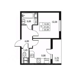 Общая площадь33,38 м²